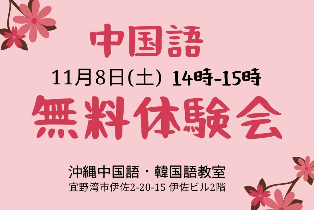 場所: 沖縄中国語・韓国語教室 宜野湾市伊佐2-20-15 伊佐ビル2F