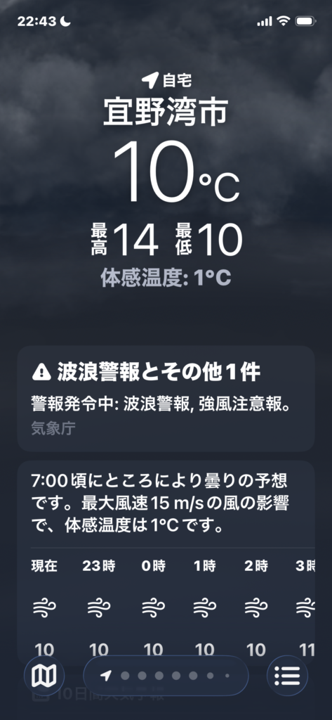 沖縄に「冬」がやってきた?今週末の沖縄は、まさに「記録的な冷え込み」となりましたね。今日の最低気温は10℃。数字だけを見れば「そこまで?」と思われるかもしれませんが、沖縄特有の強い北風と時折ぱらつく小雨が重なり、スマートフォンの天気予報に表示された体感温度はなんと「1℃」。