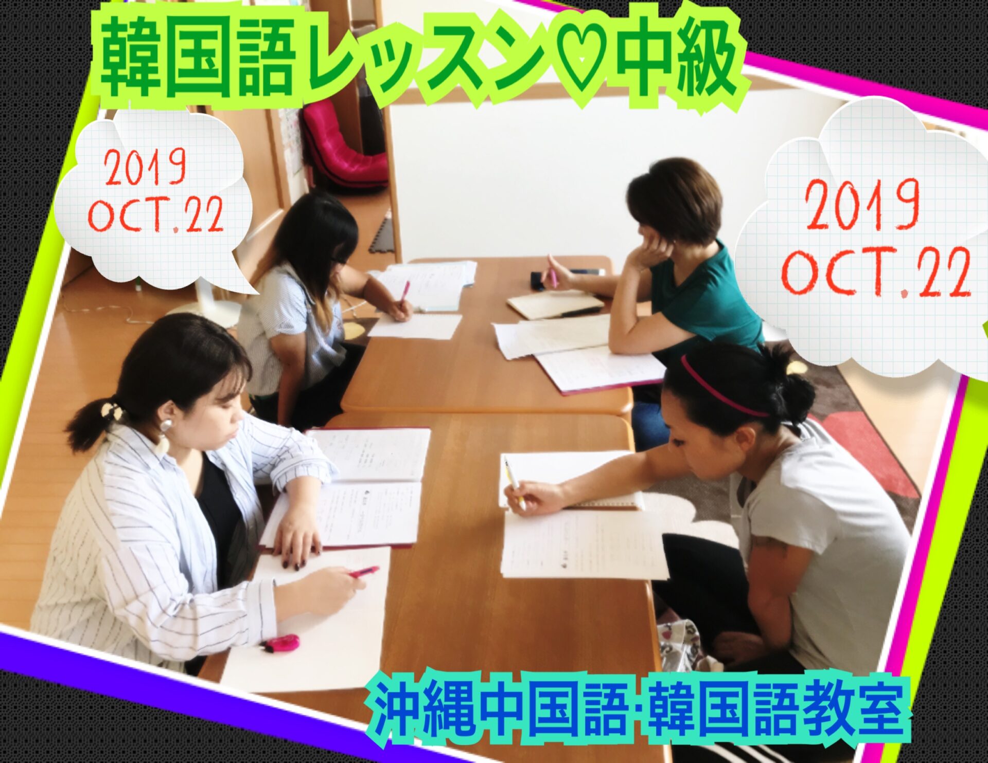 沖縄中国語教室の先生日記2025年10月31日中国語・韓国語レッスン風景と中国語無料体験会、韓国語無料体験会、交流会のご案内