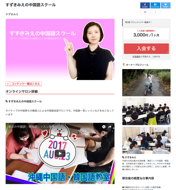 先日より、DMMオンラインサロン「すずきみえの中国語スクール」をスタートしました。